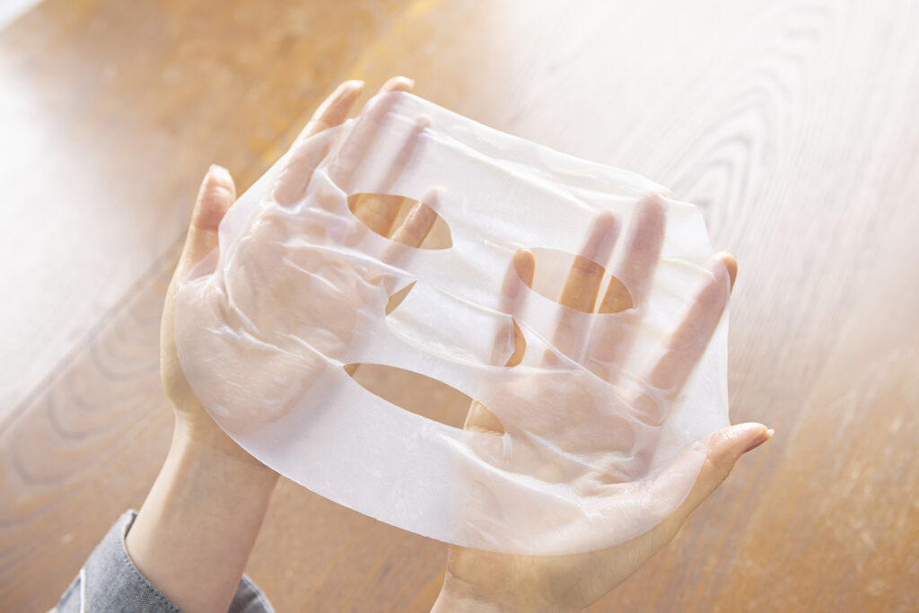 美容液を肌へ確実に届けるため、シートにはヤシの実由来の天然素材「バイオセルロースシート」を採用しました。一般的な不織布の約300分の1のナノ繊維でできたこのシートは、ナタデココのような強力な密着性が特長です。