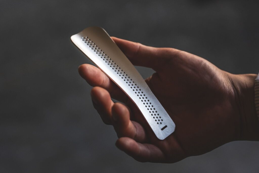 整列した穴、身体に馴染む形状、金属の質感、コンパクトながら使いやすさを重視した設計。当社が長年培ってきた技術が詰め込まれた「三栄金属製作所の名刺となるプロダクト」となっております。